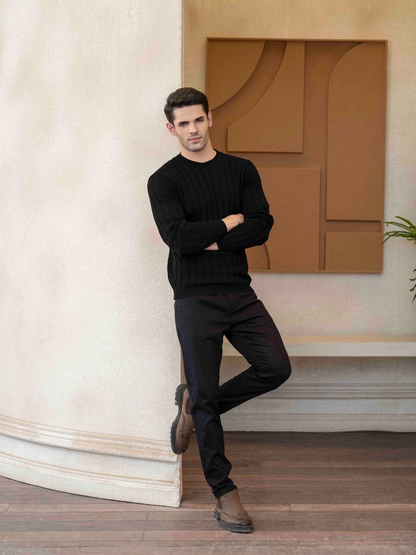 Blending viscose, nylon, and polyester, the Crew Neck Sweater offers a soft hand-feel with the strength to hold its shape wear after wear. A vertical rib-knit texture elevates the design, complemented by ribbed details at the collar, cuffs, and hem. The regular fit makes it versatile for layering or wearing solo, while its mid-weight knit and built-in stretch keep you warm, comfortable, and effortlessly at ease all winter long.